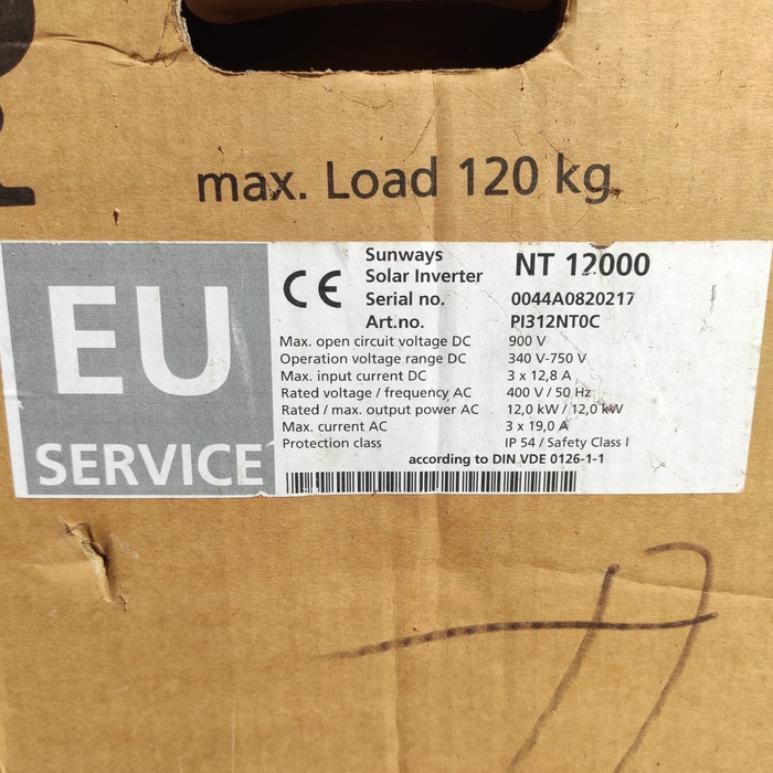 Solar Inverters SUNWAYS Triphasengetriebe ref S1312NTOC max. Eingangsleistung 12 600 W, max. Ausgangsleistung 12 000 W