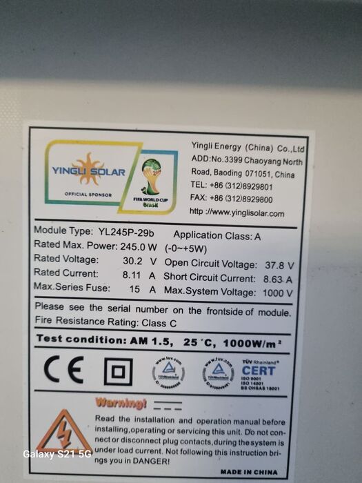 Moduli FV / Poli / Yingli - YL245P-29b 245Wp