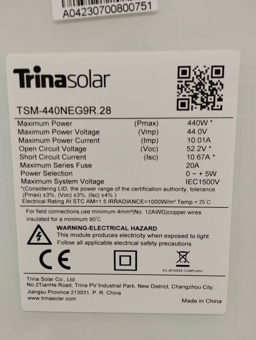 Das Trina Solar Vertex S+(R) TSM-440NEG9R.28 ist ein monokristallines Solarmodul mit 440Wp.