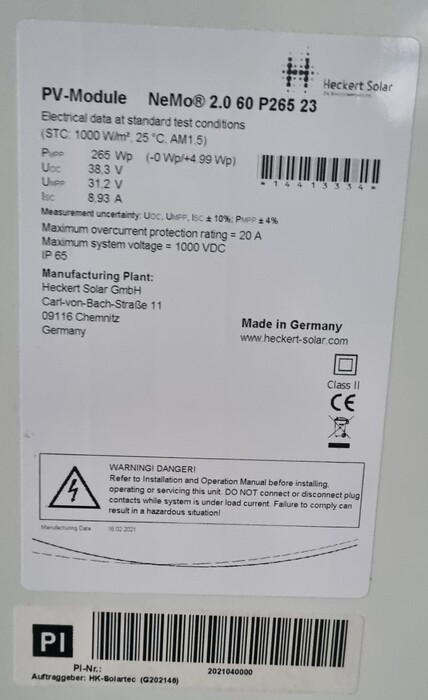 Moduli FV / Poli / Heckert Solar - NeMo 2.0 60 P265 ...