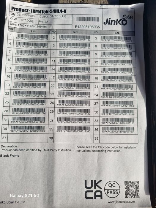 Tiger Neo N-Type JKM415N-54HL4-V BFR 415W