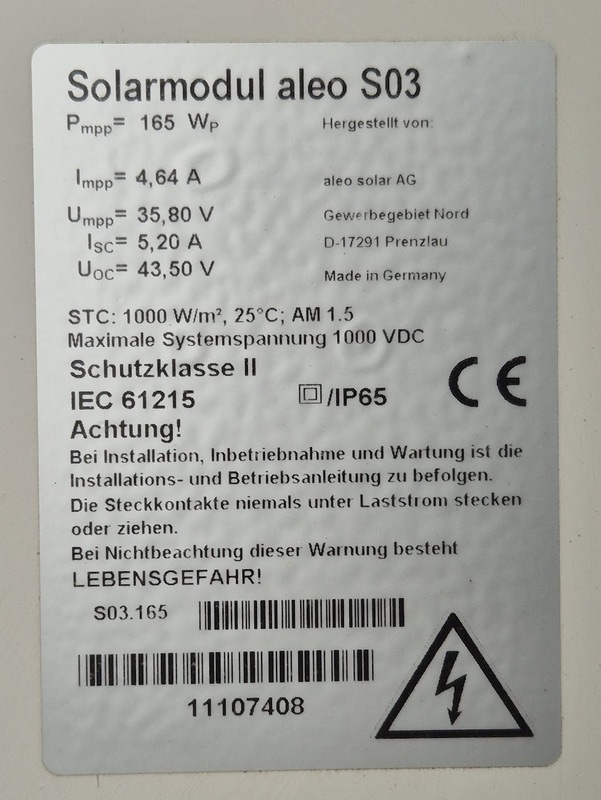 Ich biete hier gebrauchte Solarmodule an: aleo S03, 165W