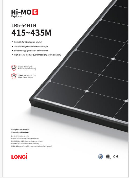 Moduli FV / Mono / LONGI Solar - LR5-54 HTH 430 M