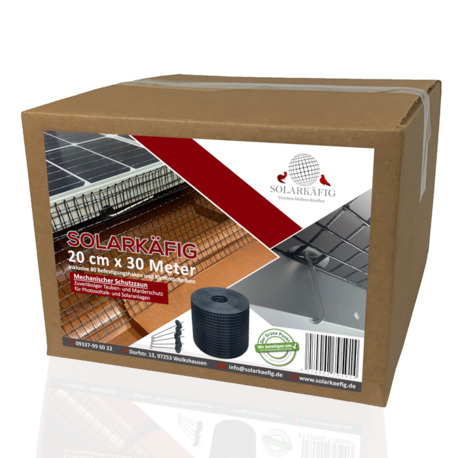 Der Solarkäfig wurde speziell für den Marder- und Taubenchutz von Photovoltaikanlagen entwickelt und bietet optimale Maße für eine effektive Taubenabwehr. Mit einer Höhe von 20 cm und einer Länge von 30 Metern schützt er zuverlässig vor Kleintieren, ohne die Belüftung der Solarmodule zu beeinträchtigen. Die Maschenweite beträgt 1,25 cm, während die Drahtstärke bei 1 mm liegt – robust und langlebig. Das Set umfasst außerdem 80 J-Haken und Klemmscheiben aus Edelstahl sowie eine ausführliche Installationsanleitung, die eine schnelle und einfache Montage ermöglicht.