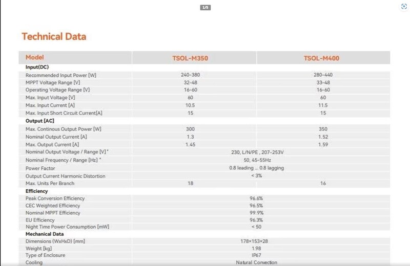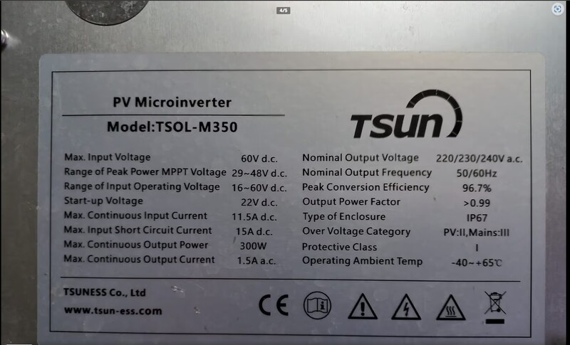 - Il microinverter TSUN versione TSOL-M350 è un microinverter da 300W di dimensioni compatte. È progettato per essere utilizzato in impianti Plug&Play o mini impianti fotovoltaici.