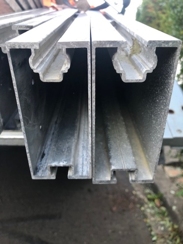 Zum Verkauf stehen 2 Sorten Schwerlastschienen mit verschiedenen Abmessungen und Längen der Firma Schletter oder baugleich.