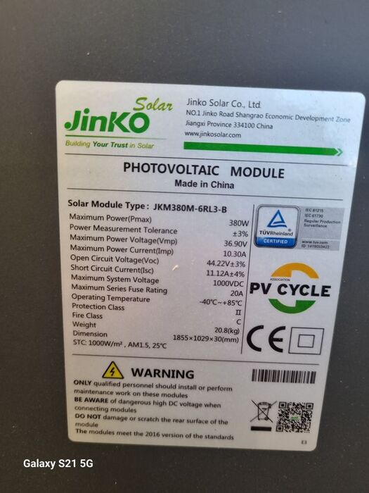 Moduli FV / Mono / JinkoSolar - JKM380M-6RL3-B