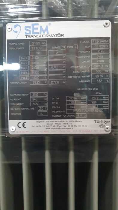 NENNLEISTUNG (kVA): 3150