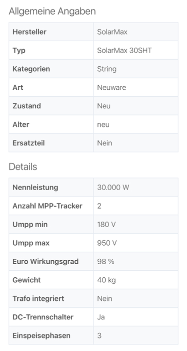 Inverter / Stringa / SolarMax - SolarMax 30SHT