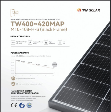 Moduli FV / Mono / Tongwei - Tongwei 410 MAP- ...