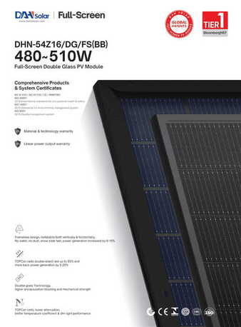 N type;Bifacial double glass;Full screen;Full black;1.25m/1.25m cable