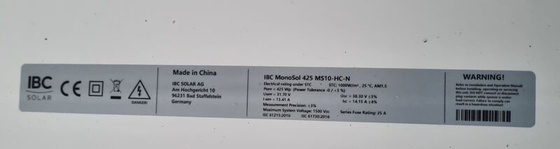 IBC Solar MonoSol 425 MS10-HC-N