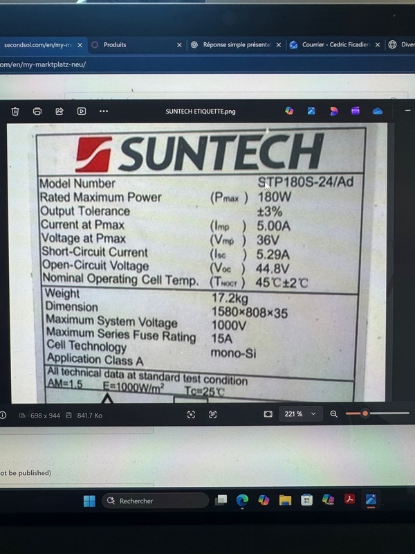 The Suntech STP185S-24/Ad is a monocrystalline solar module with 180 Wp.