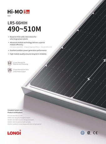 Moduli FV / Mono / LONGI Solar - LR5-66 HIH 500 M