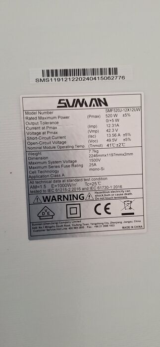 Das SunMan SMF520J-12X12UW ist ein monokristallines Solarmodul mit 520Wp.
