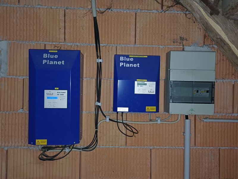 1 x den Blue Planet PVI 5000i an den sind 30 Module aufgeteilt in 2 Strings a 15 Module