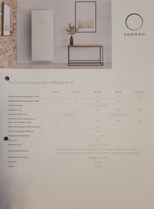 Wir verkaufen unsere Sonnenbatterie eco10 wegen einer Systemumstellung. Die Batterie wurde im Dezember 2020 in Betrieb genommen und im Dezember 2024  im Rahmen eines Innovationsaustauschprogrammes in ein neues leistungsfähigeres Modul getauscht.