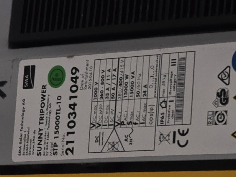 Ich verkaufe hier meine funktionsfähigen Wechelricher von SMA Sunny Tripower STP 15000TL-10