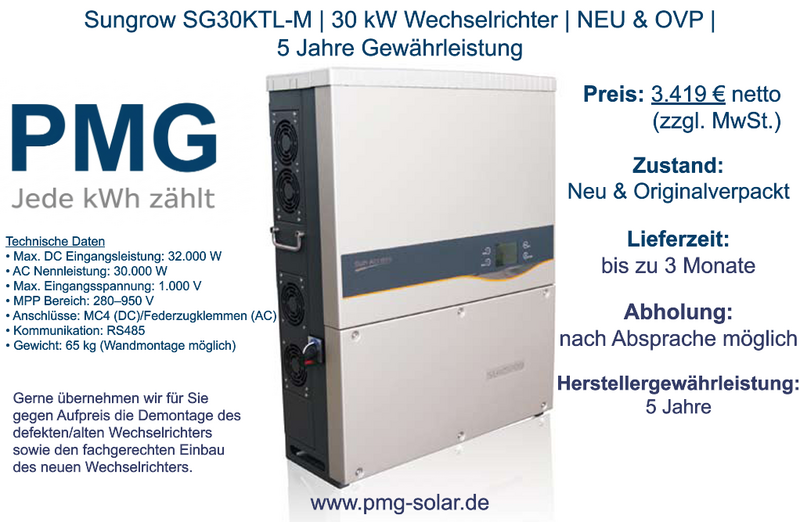Sungrow SG30KTL‑M | 30 kW Wechselrichter | NEU & OVP | 5 Jahre Gewährleistung
