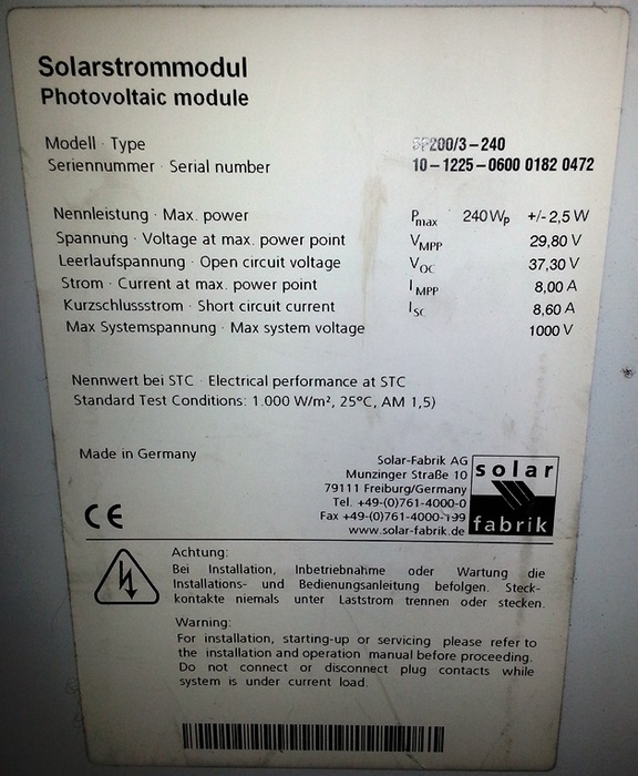 Moduli FV / Mono / Solar Fabrik - SF200/3 - 240
