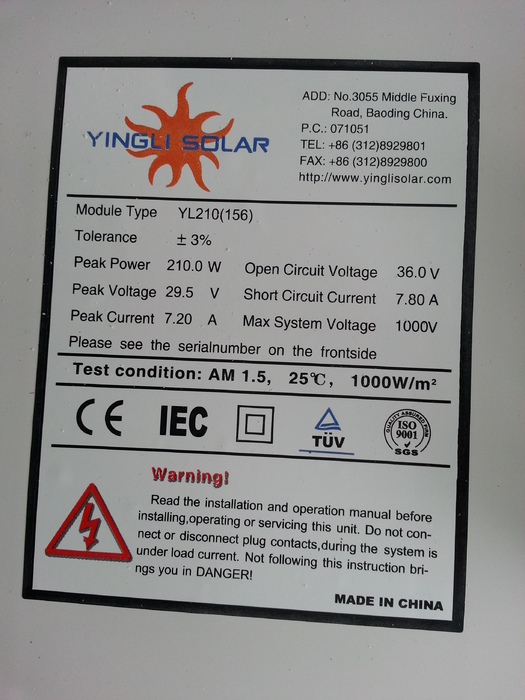 Yingli YL 210 (156) 210Wp / Yingli YL210 (156) / Yingli YL210 (156)