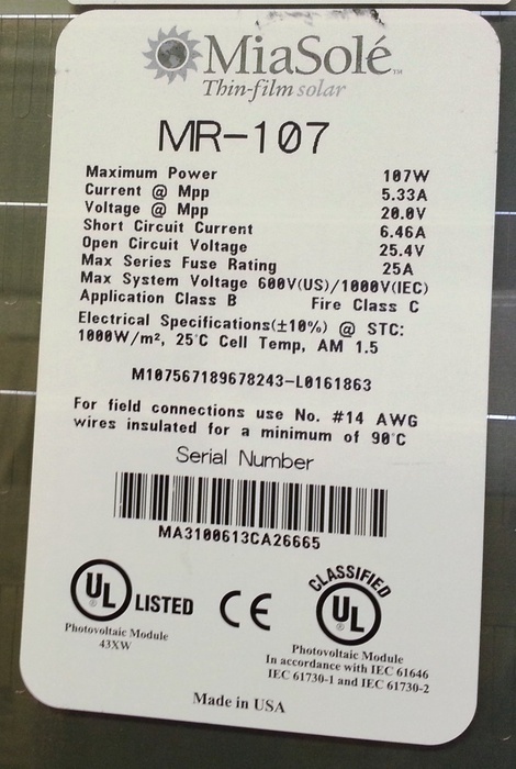 Moduli FV / CIS/CIGS / MiaSole - MR-107