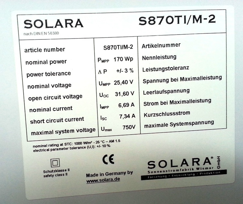 Das SOLARA S870TI/M-2 ist ein monokristallines Solarmodul mit 170Wp