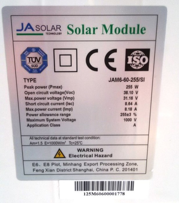 SI Solare JAM6-60-255 / SI = SI Solare JAM6-60-255 / SI