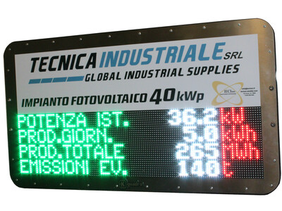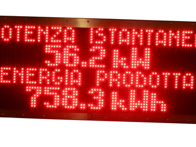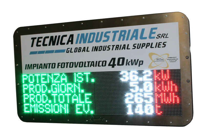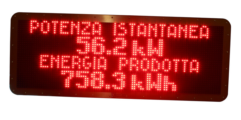 Progettazione e produzione tabelloni LED per la visualizzazione dei dati di produzione degli impianti fotovoltaici.Info su Kquadro Elettronica SRL