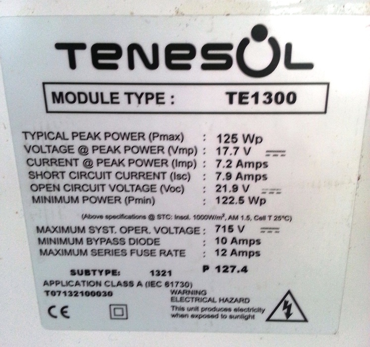 Zonnepanelen / Poly / Tenesol - TE1300 - 125Wp