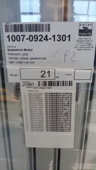 Type Solarfabrik Premium L Poly SF 200-190 190Wp