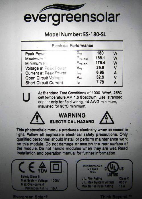 Zonnepanelen / Poly / Evergreen Solar - ES-180-SL 180Wp