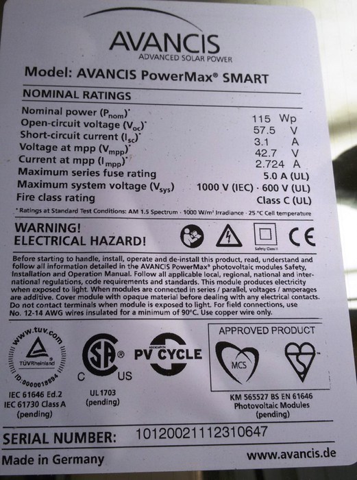 Zonnepanelen / a-Si / Avancis - PowerMax SMART 115Wp