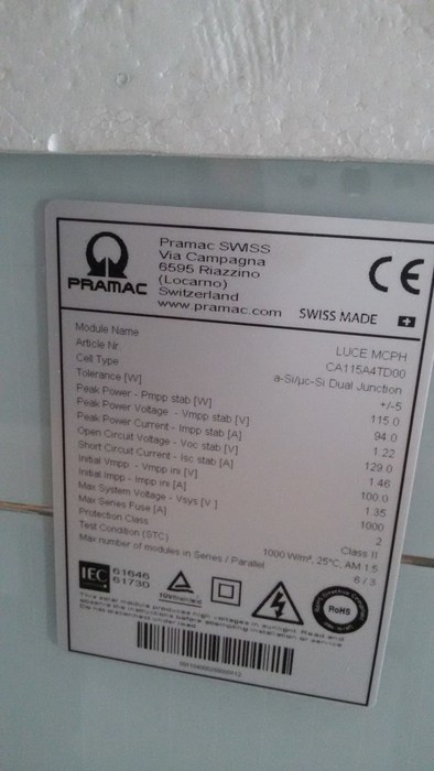 Das Pramac Swiss Luce MCPH ist ein Dünnschicht-Solarmodul mit 115Wp