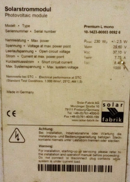 De PV-modules zijn restanten. De PV-modules worden verkocht zonder enige garantie of waarborg. Indien er nog restgaranties zijn, kunnen deze eventueel door de koper worden ingeroepen (mits de fabrikant niet insolvent is). Wij wijzen u er uitdrukkelijk op dat wij als verkoper geen aanspraak op garantie of garantie kunnen geven. Door uw bindende aankoop te doen, gaat u hiermee akkoord!