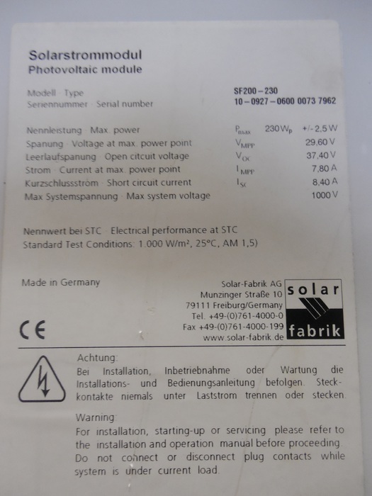 Zonnepanelen / Poly / Solar Fabrik - SF 200-230