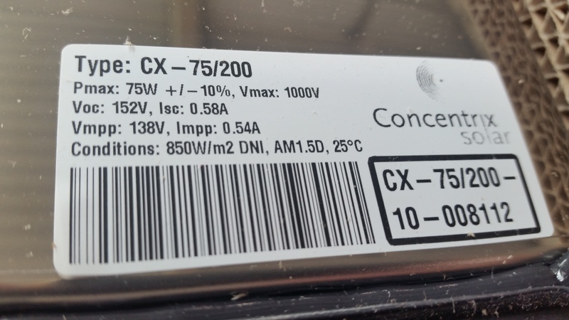 Angeboten werden von Concentrix Solar CX - 75 - II CPV-Solarmodule mit 75 Wp.