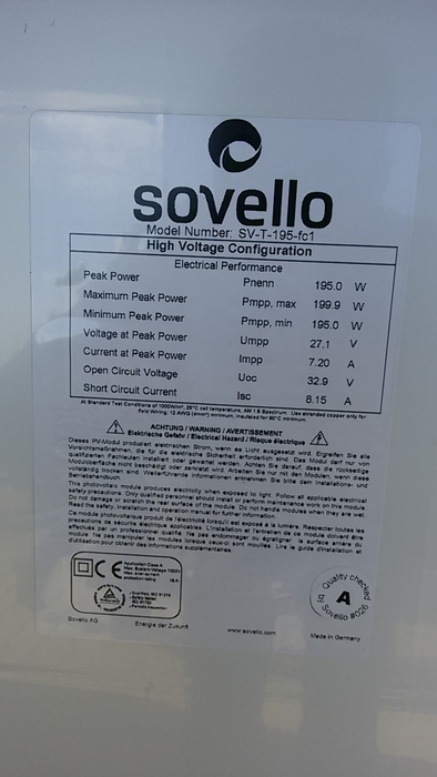 Sovello SV-T 195 FC1 195Wp - High Voltage Configuration
