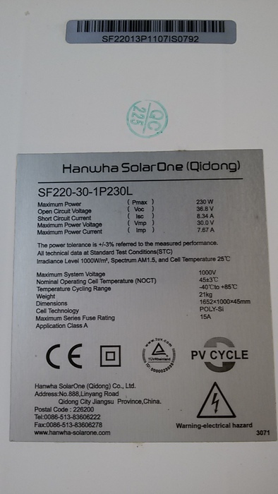 Hanwha SF220-30 1P230  230 W polykristallines Solarmodul mit 230 Wp