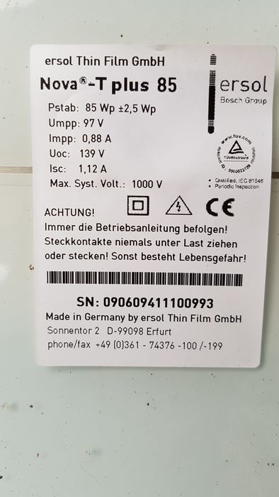 Zonnepanelen / a-Si / Ersol - Nova-T plus 85W