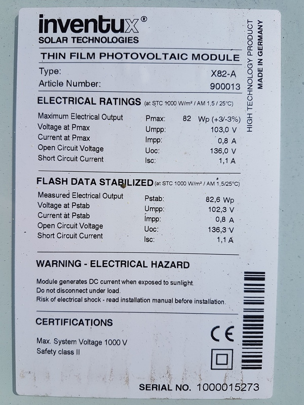 Das Inventux X82-a ist ein a-Si Dünnschicht Solarmodul mit 82Wp.