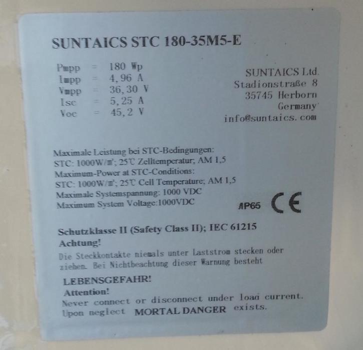 Zonnepanelen / Mono / Suntaics - STC 180-35M5-E