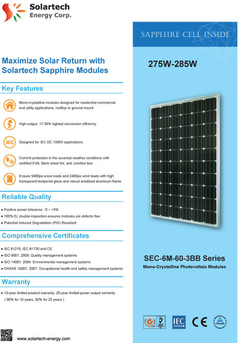 Zonnepanelen / Mono / Solartech Enegy ... - SEC-6M-280-60-4BB