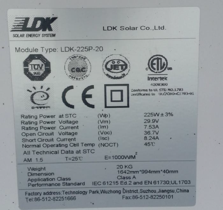 Zonnepanelen / Poly / LDK Solar - LDK 225P-20
