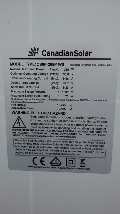 Canadian Solar CS6P-265P WS / Canadian Solar CS6P - 265 P WS