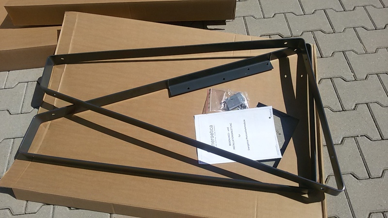 Fotovoltaïsche zonnemodule E-1000ECO / 230-250 inclusief twee gegalvaniseerde stalen beugels/hoeken en bevestigingsmateriaal voor het platte dak of voor de gevel.