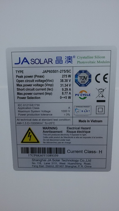 JA-Solar JAP60S01-275 / SC = JAsolar JAP 60S01 - 275 / Sc = JA Solar JAP60 S01 275SC