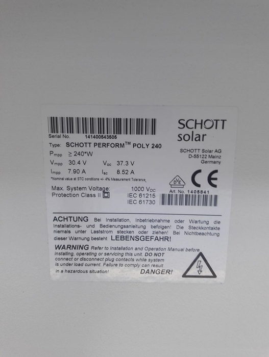 Das Schott Perform Poly 240 ist ein polykristallines Solarmodul mit 240Wp