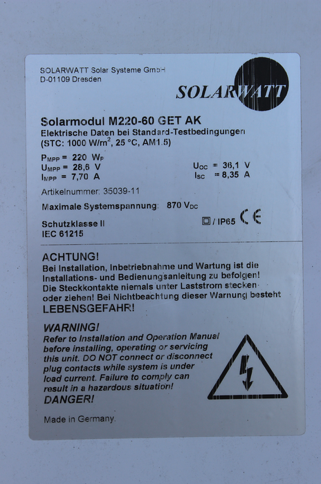 Zonnepanelen / Mono / Solarwatt - M220-60 GET AK