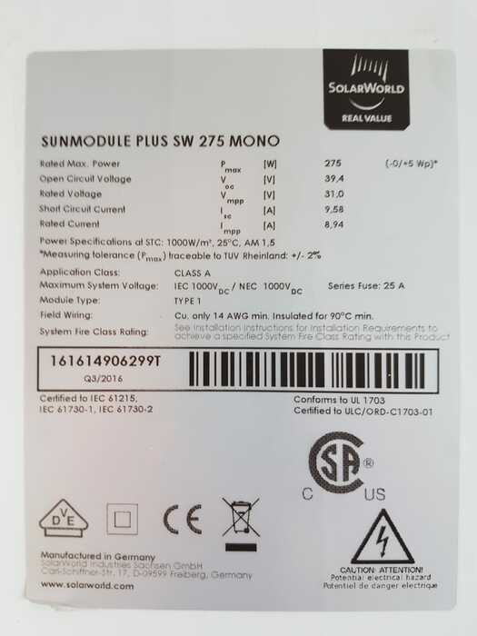 SolarWorld SW Plus 275 mono 5BB / Solarworld SW PL 275 mono 5BB